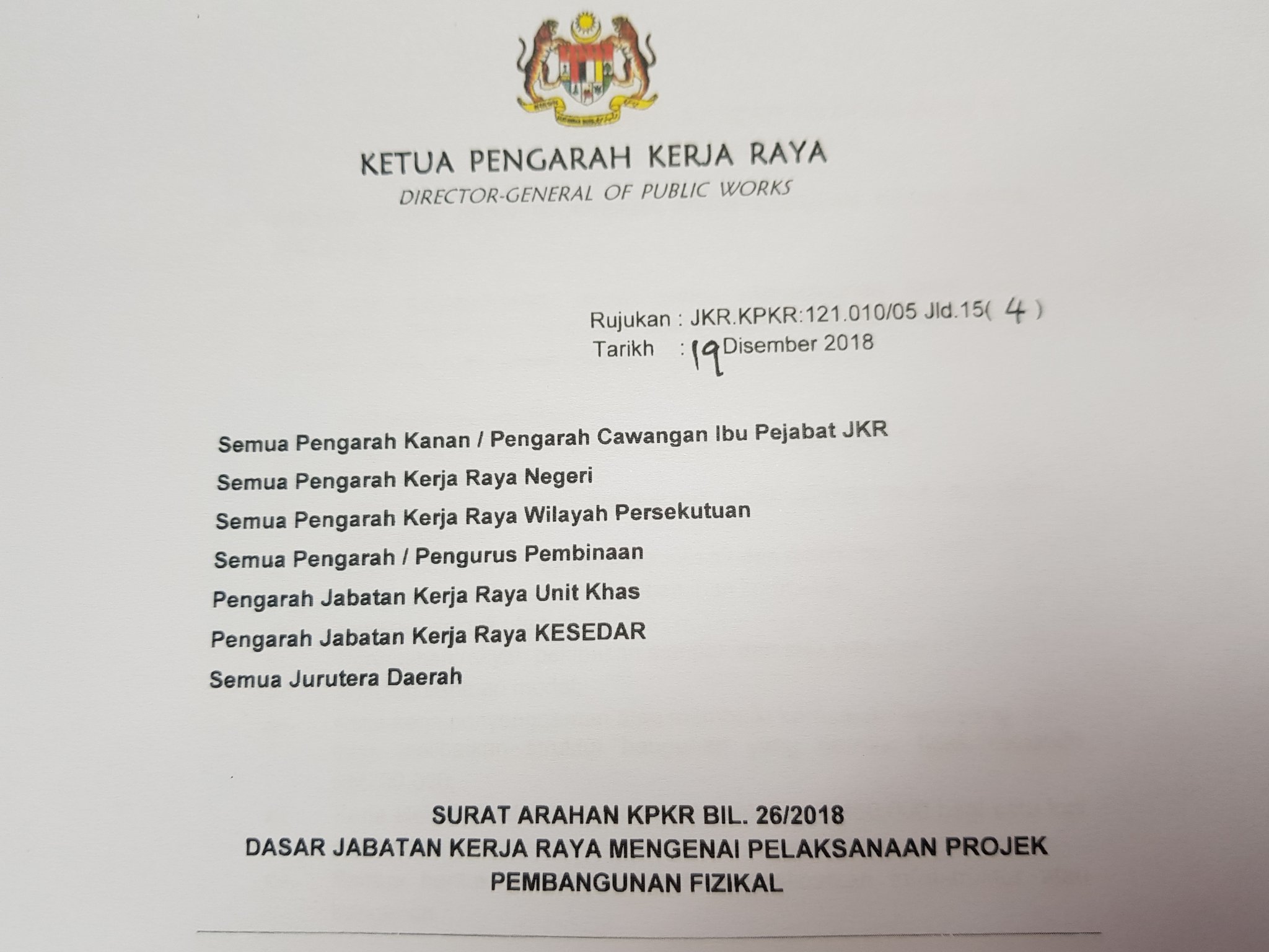 Surat Arahan KPKR Bil42019. Surat Arahan Ketua Pengarah Kerja Raya Surat Arahan KPKR Bil. Pekeliling Kemajuan Pentadbiran Awam.